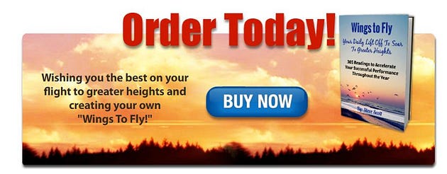 In Wings To Fly, Your Daily Lift Off To Soar To New Heights, my wish is to bring you something to think about every day that can and will improve your life. Your life will not be measured so much by what you accomplish. It will be measured more by what you had to overcome in order to accomplish. Only when you let go of your old thinking and replace it with new thought patterns can you soar to new heights. Physically, the bird has to flap its wings to fly. But until the bird decides in its mind to flap its wings, the goal of flying will go unrealized.